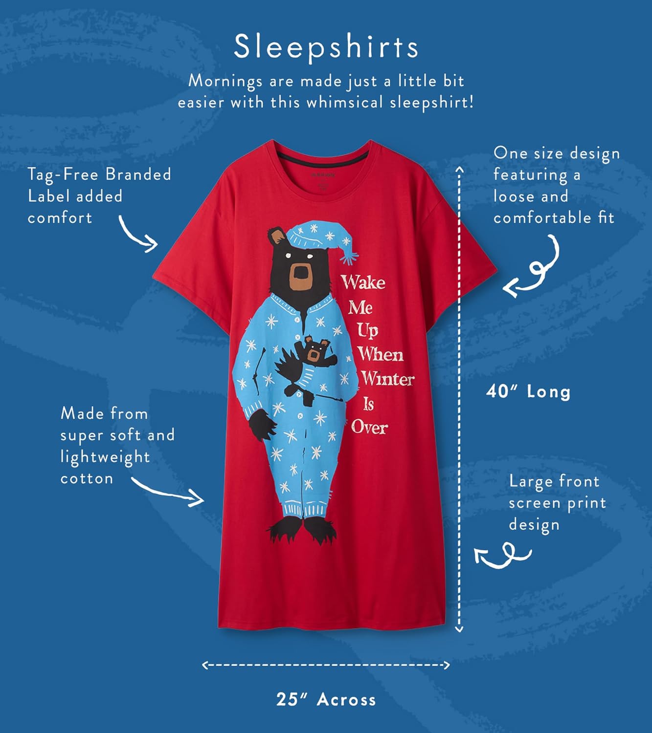 Little Blue House by Hatley has been making one sized sleepshirts for over 30 years! Made from 100% lightweight cotton, our fun and playful night shirts feature a loose and comfortable fit with original designs and funny puns that help you express yourself. Perfect for lazy mornings, afternoons and evenings. Wear it over leggings for your all day around the house uniform. Every night shirt can be washed over and over and will be your go-to pj for years to come. Our nightshirts make a hilarious gift for friends, mothers, daughters and everyone in between. 860 90th Avenue, Lasalle, Québec, H8R 3A2, Canada