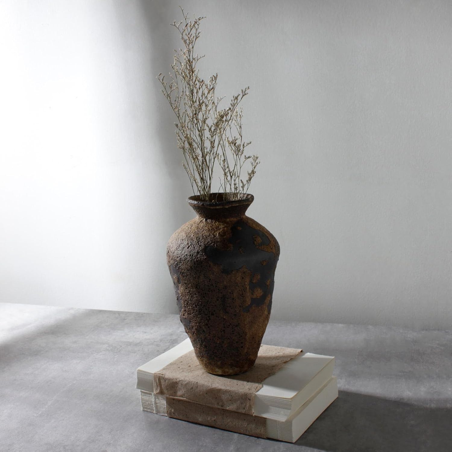 Ceramic Rustic Farmhouse Vase, Pottery Flower Vase for Centerpieces, Decorative Vase for Table, Living Room, Bedroom, Bathroom