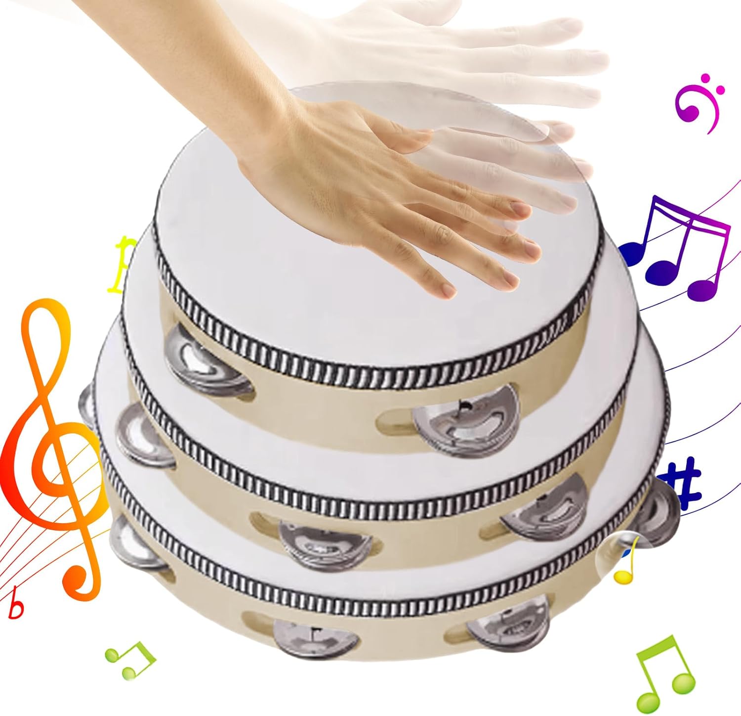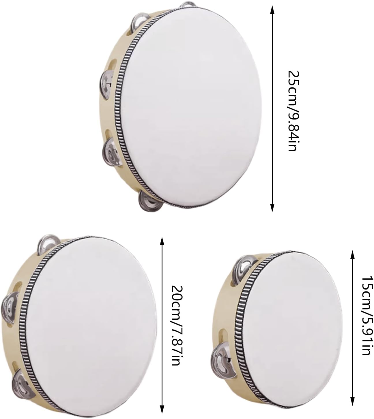 Designed to meet various needs, it combines this tamburin functionality with the user's friend. The handmade wood is portable and supports music lessons, beginner training and various performances. Ideal for classroom activities, church meetings, weddings, parties and festivals, enriches dance and accompanying events and is suitable for children and adults in school settings. Budget: Material: Drumhead + Metal + Wood Product Size: Diameter A: approx. 15cm/5.91'' B: approx. 20cm/7.87'' C: approx. 25cm/9.84'' Weight: 380g per set Packing list: 3* Adult Tamburin Note: Due to different lighting and screen settings, the colour of the item may differ slightly from the picture. Due to different manual measurements, please allow 1-2 cm in size.